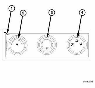 - a rotary control knob for temperature control of the rear discharged air (3). An indicator lamp illuminates in the control when the rear heater-A/C controls are locked out by the driver or front seat passenger.