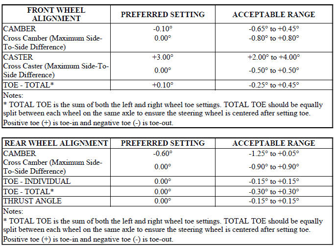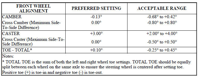 NOTE: All wheel alignments are to be set with the vehicle at curb height.
