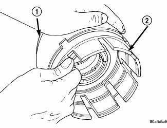 18. Separate clutch retainer (2) from OD/Reverse piston (1).